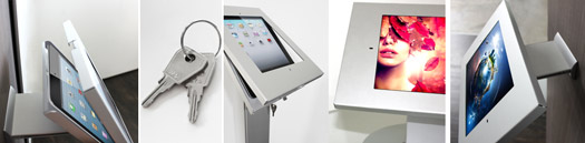 Diese ipad-Halterung wird einfach angeschraubt, ein Schloß an der Unterseite sichert es vor unerlaubtem Zugriff.